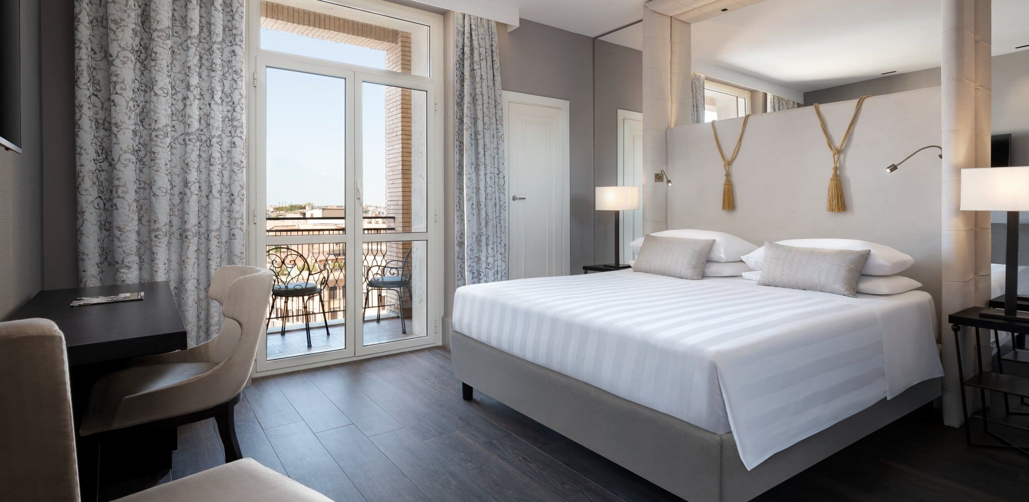 At Luxe Rose Garden Hotel Roma, your happiness is at the forefront of everything we do. That’s why each of our 57 double rooms and 8 spacious suites has been thoughtfully designed with your comfort and style in mind, featuring Louis XV furniture, refined wood floors, refreshing rain showers, and breathtaking city views available from the upper floors. For the best hotel rates in Rome, browse our collection of room types below.